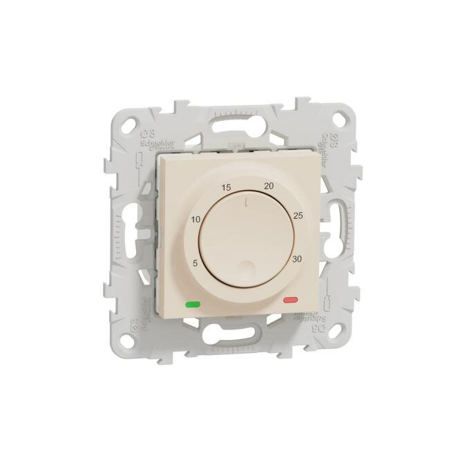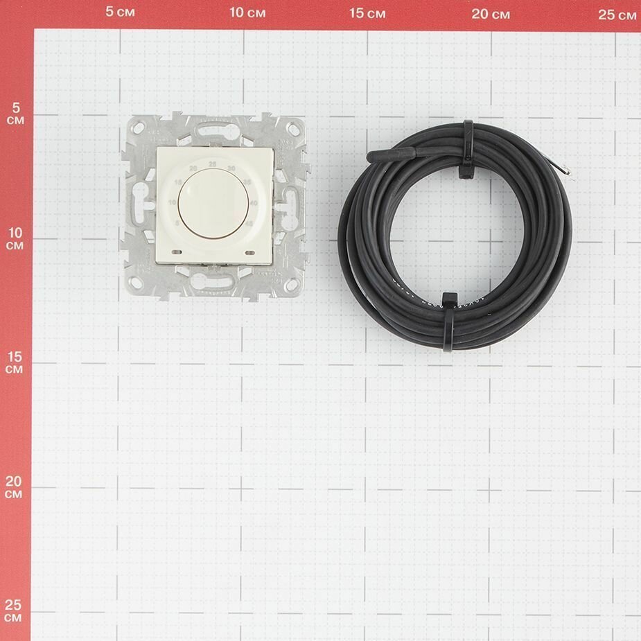 Термостат теплого пола Unica NEW бежевый 10А 5-45°C с датчиком 4м механизм встроенный монтаж (Schneider Electric), арт. NU550344