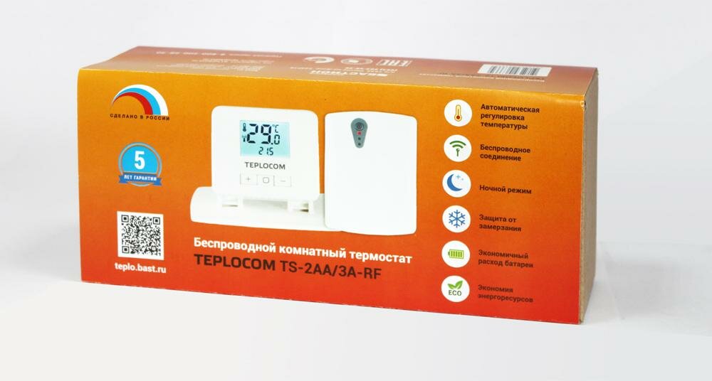 Беспроводной комнатный термостат TEPLOCOM TS-2AA/3A-RF бастион