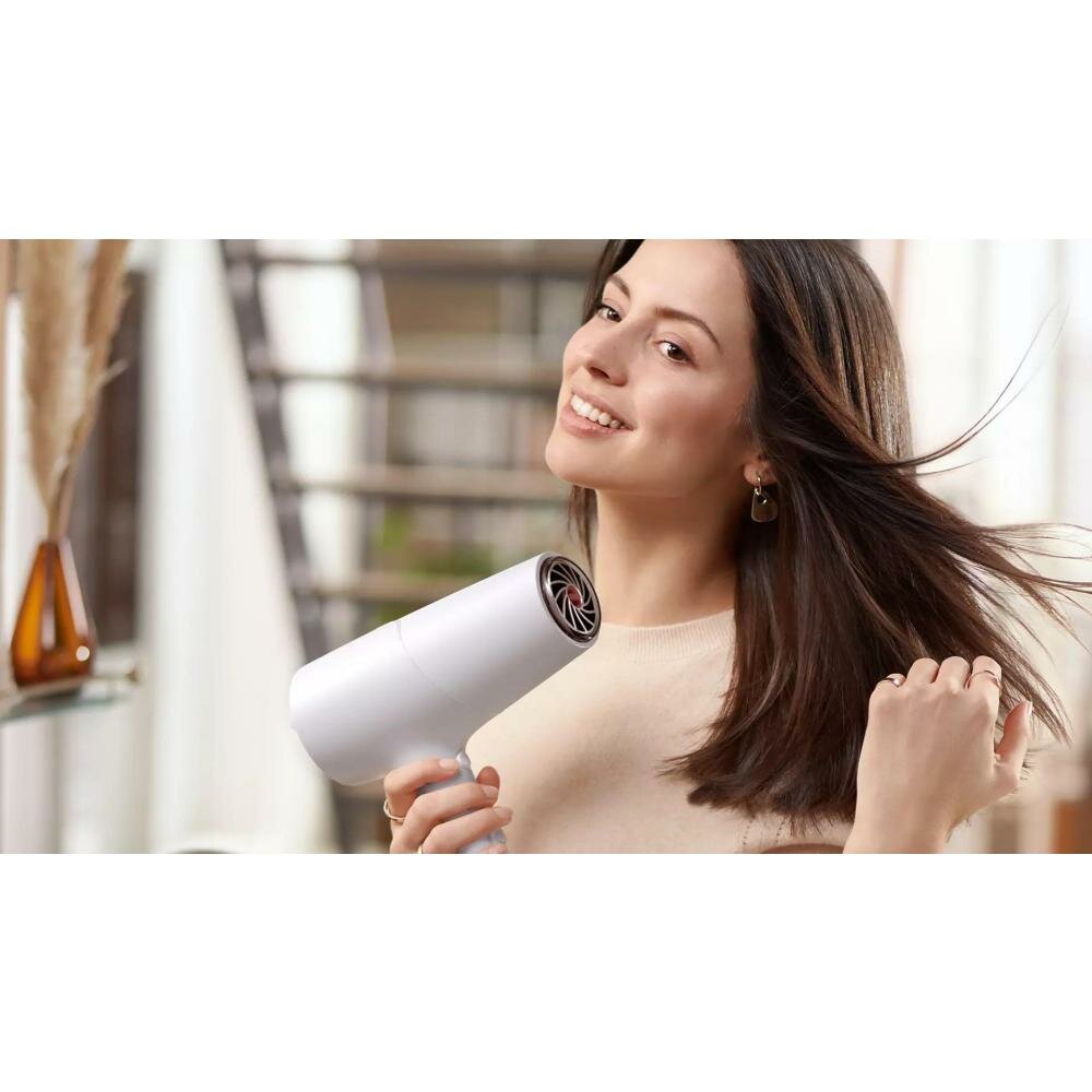 Не смотря на свой размер,фен очень легкий. Волосы после укладки феном мягкие и блестящие (без дополнительного ухода). |