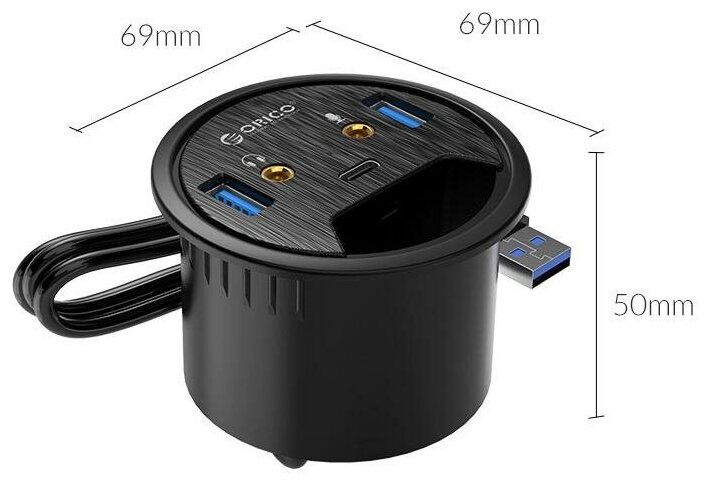 Разветвитель USB Orico Desk-2u1c (черный) .
