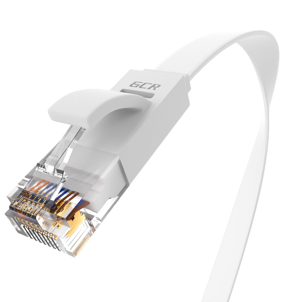 Патч-корд 20м GCR PROF плоский UTP cat.6 10 Гбит/с RJ45 LAN компьютерный кабель для интернета медный контакты 24K GOLD (GCR-LNC62) белый