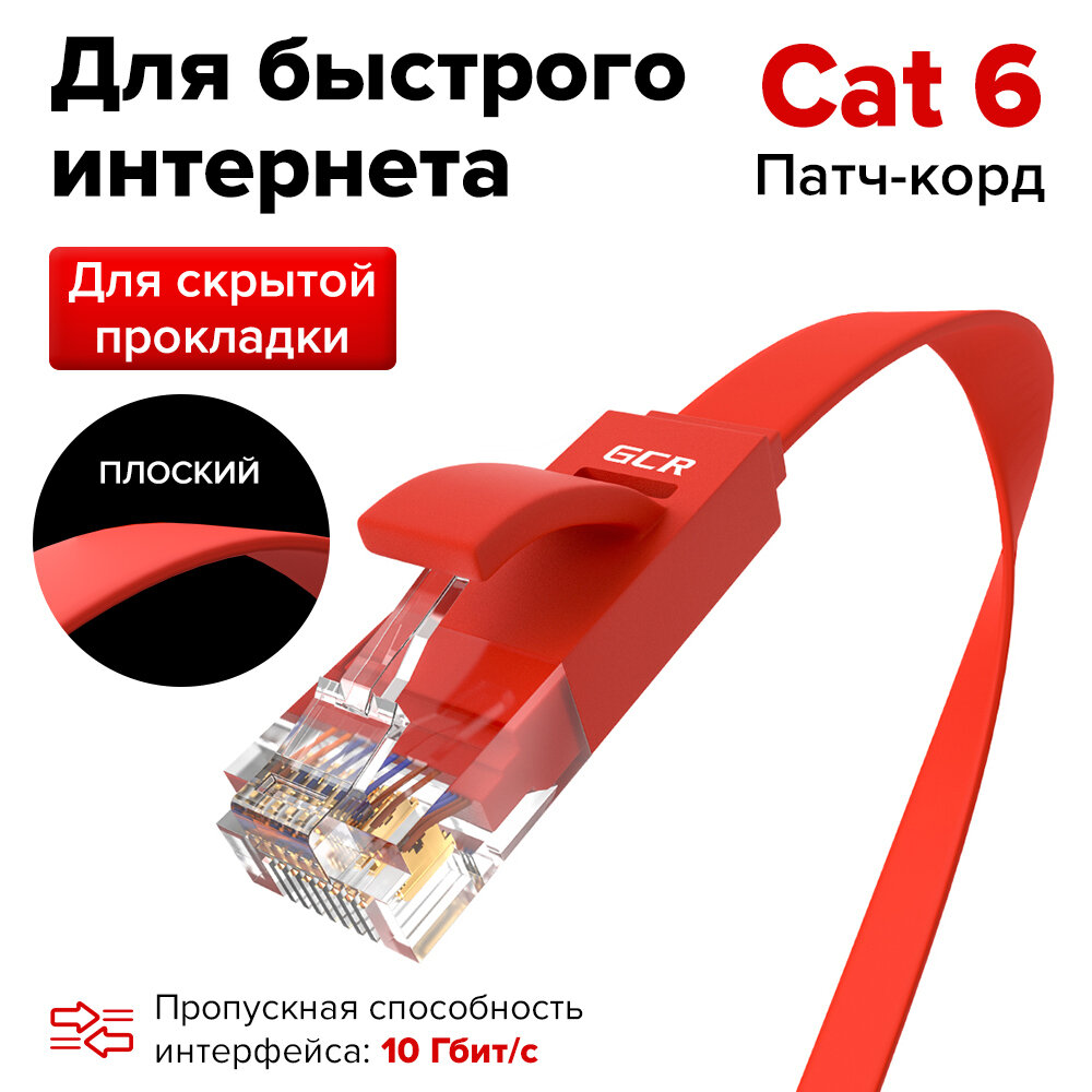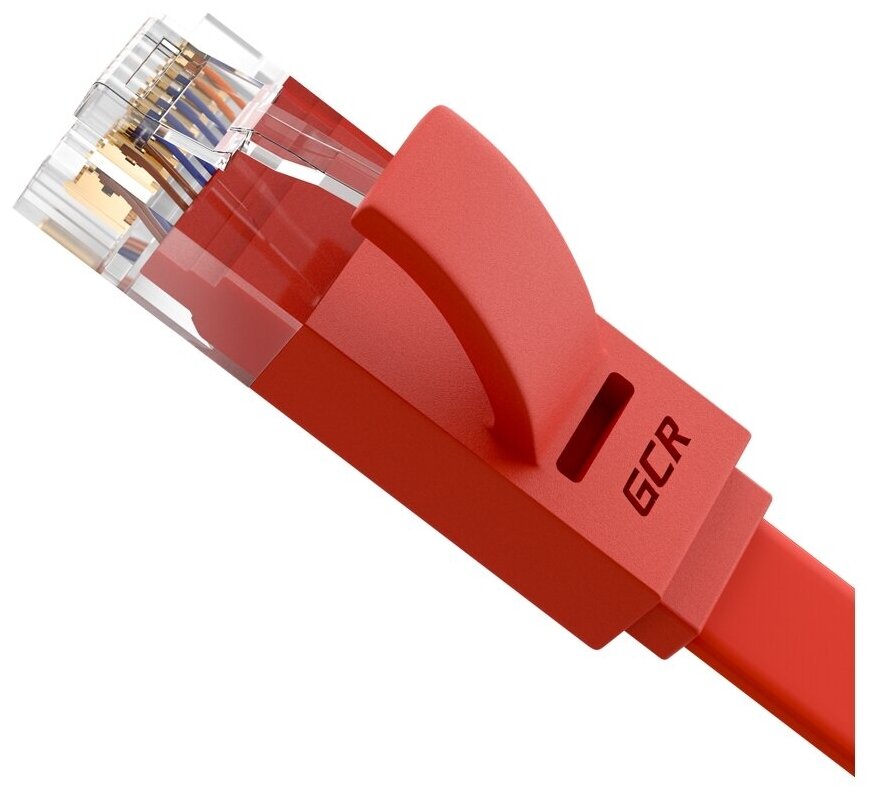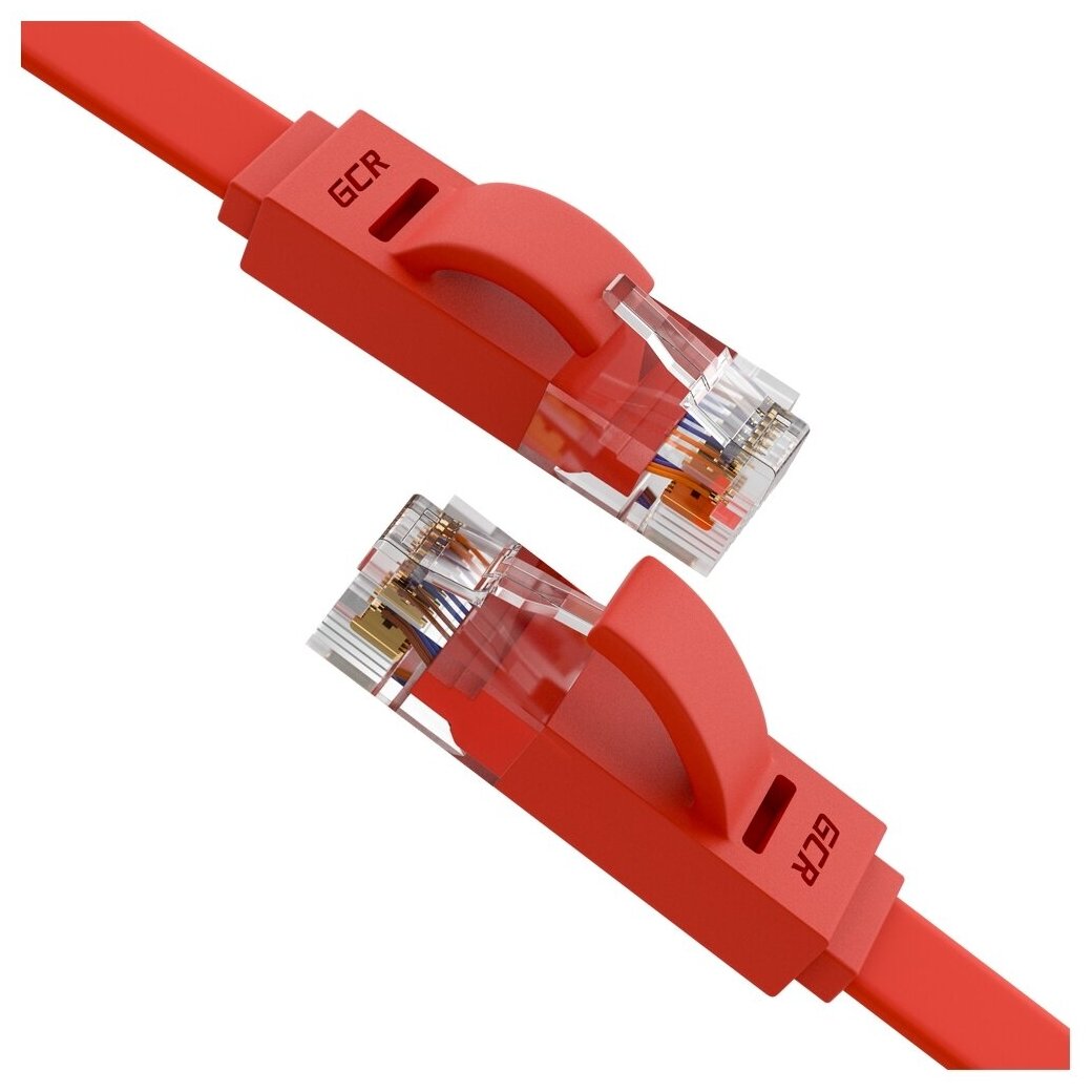 Патч-корд GCR PROF плоский UTP cat.6 10 Гбит/с RJ45 LAN кабель для интернета контакты 24K GOLD (GCR-LNC62) красный 1.0м