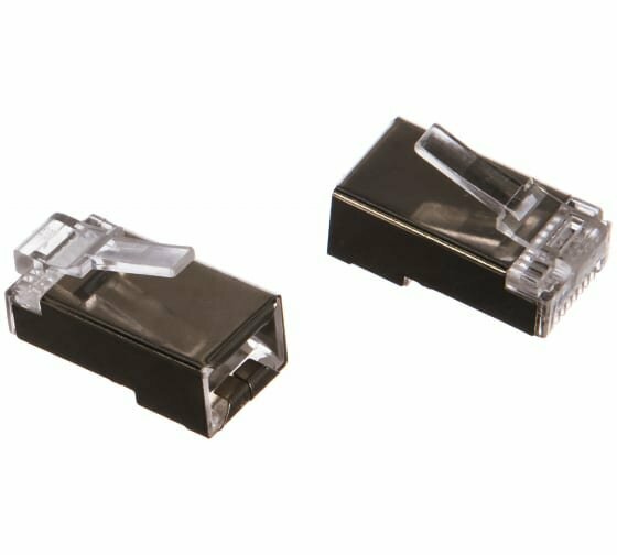 Вилка RJ-45, 8P8C PLUG5SP/10 универсальная категория 5e экранированная, контакты 30 микрон, 10 штук