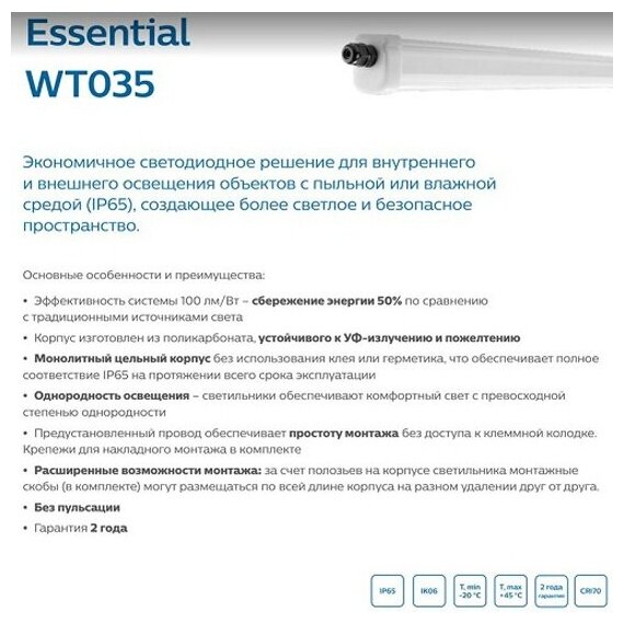 СохранитьЛинейный светильник Wt035c Led17/nw PSU CFW L600 IP65 15W 4000K 1700lm 600х35х45 Philips . интересное: