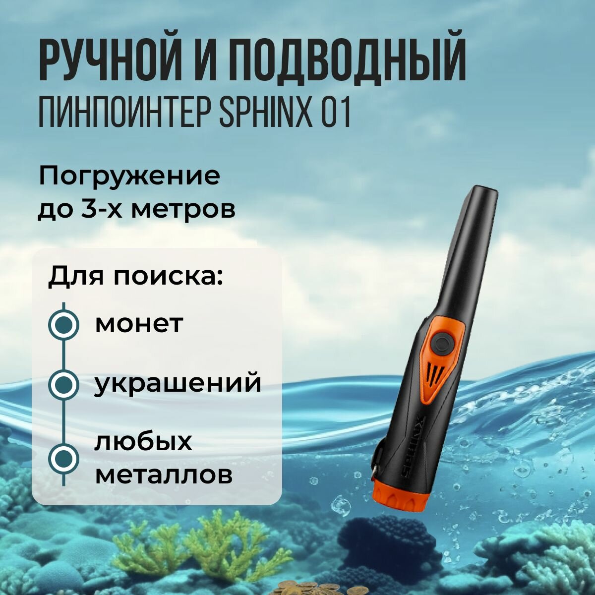 Металлодетектор Sphinx 01 BLACK (пинпоинтер) интересное: