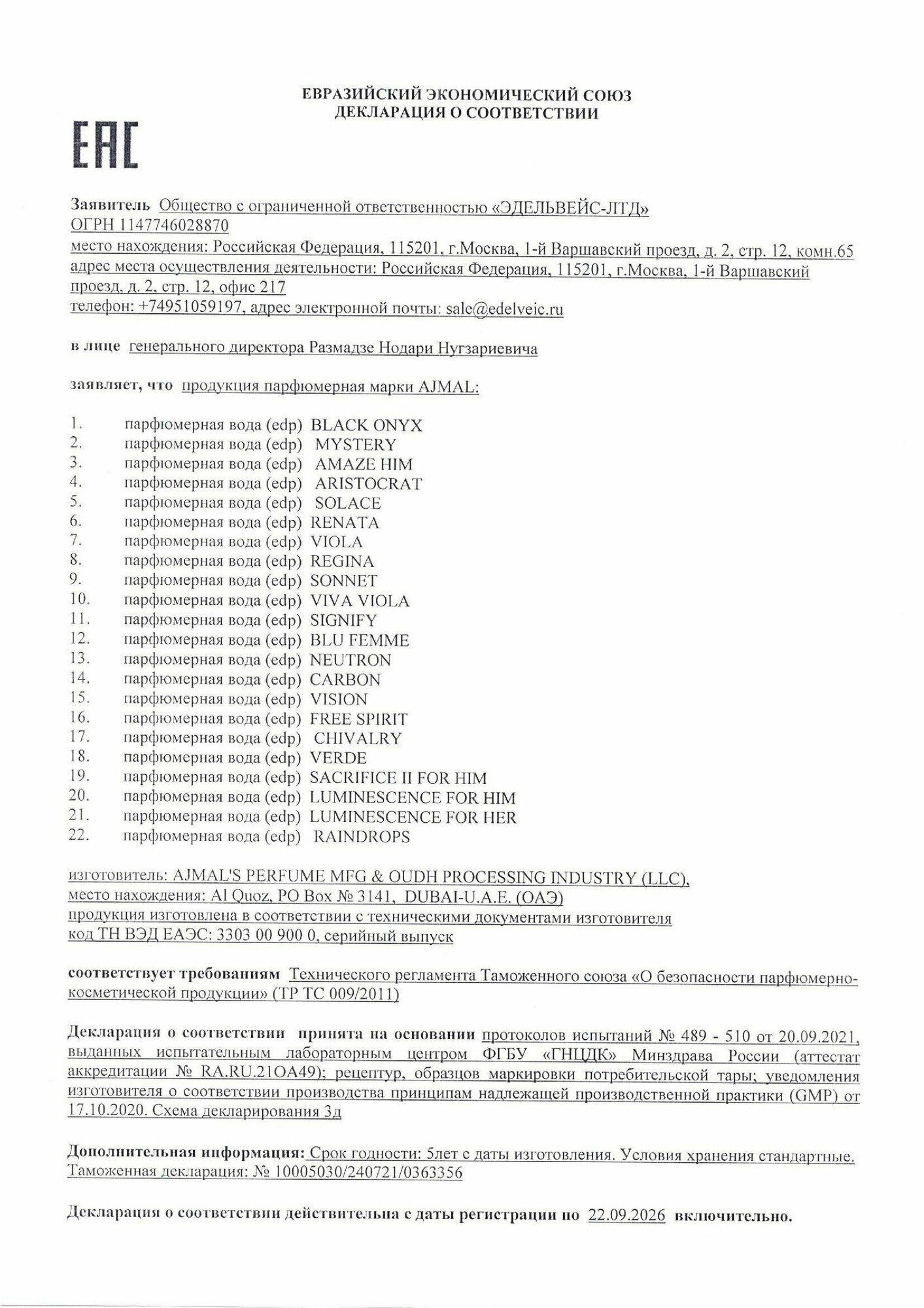 | Производитель | Ajmal |