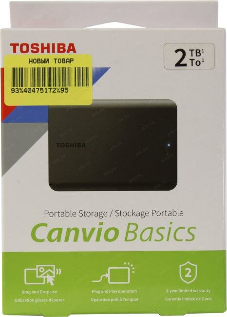 2 ТБ Внешний HDD Toshiba CANVIO BASICS, USB 3.0, черный
