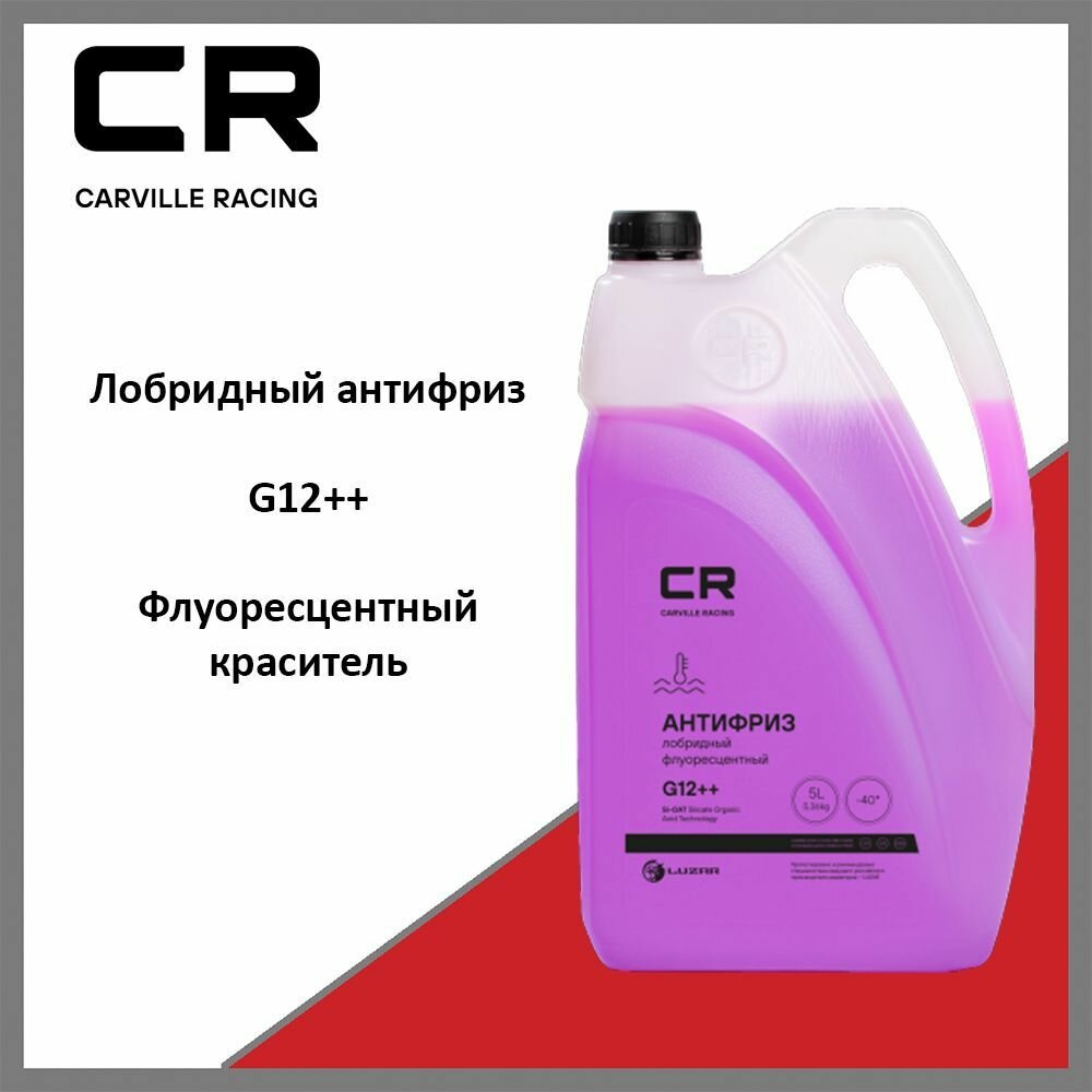 Антифриз CR лобридный флуор. -40°С, G12++, фиолет, готовый, 5л/5.36кг Carville Racing L2018002