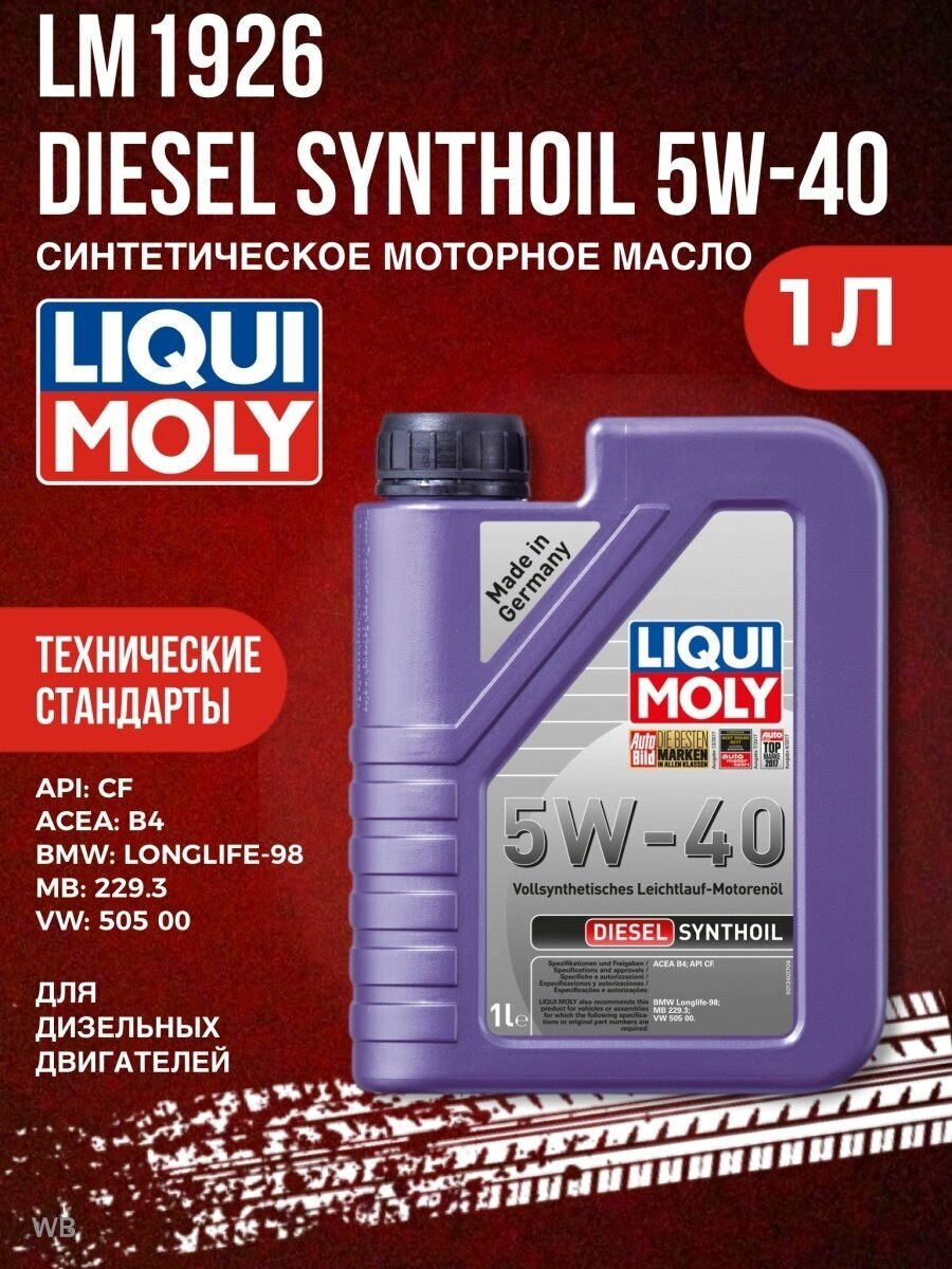 Liqui moly diesel synthoil 5w40 cf b4 1л (1926 / 1340 )