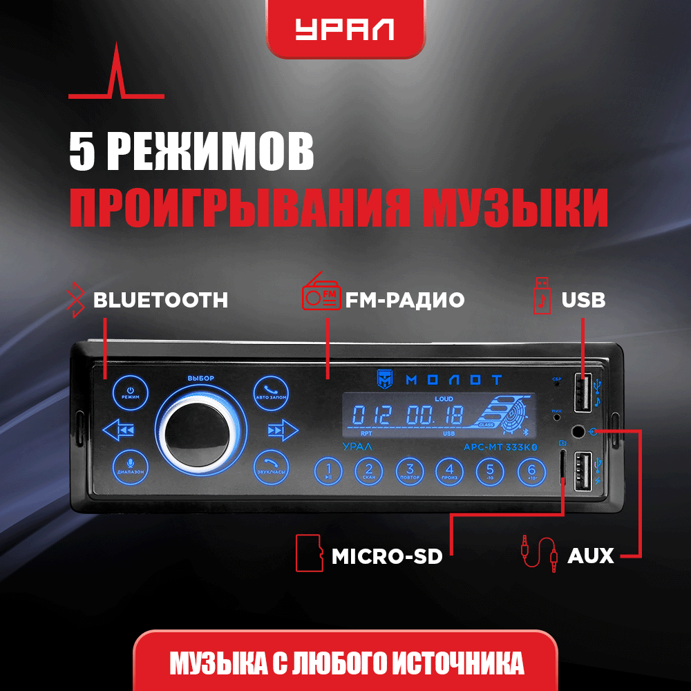 Автомагнитола Ural урал молот АРС-МТ 333К