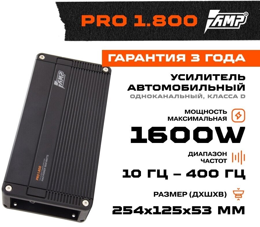 Усилитель AMP PRO 1.800 / Усилитель автомобильный / Моноблок /