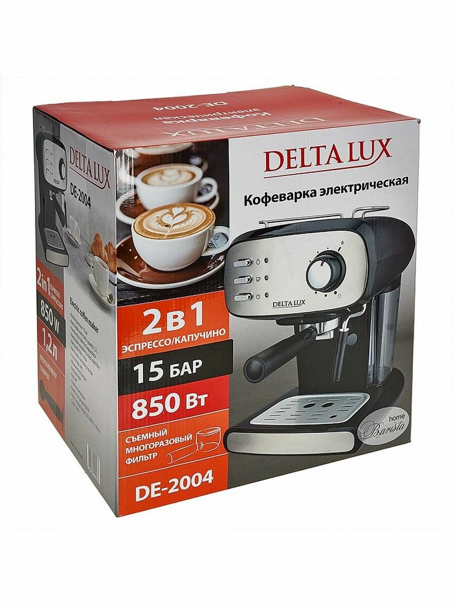 Кофеварка (рожковая) DELTA LUX DE-2004 черный: 850Вт,объем 1,2л,15 бар.