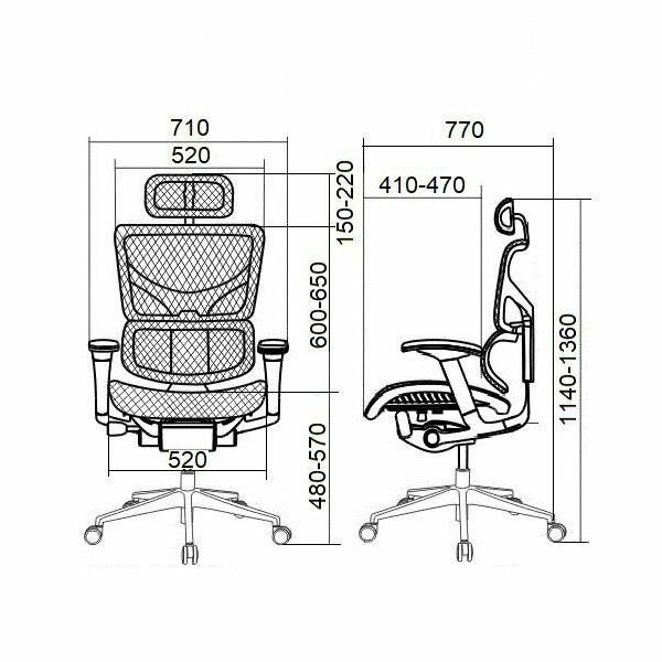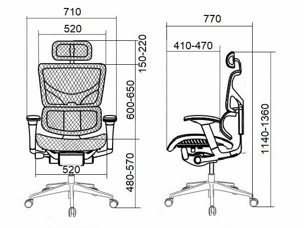 | Регулировка | высоты подголовника / высоты подлокотников / высоты сиденья / высоты спинки / глубины положения подлокотников / глубины сиденья / жесткости качания / наклона спинки / расстояния между правым и левым подлокотником / угла наклона подголовника |