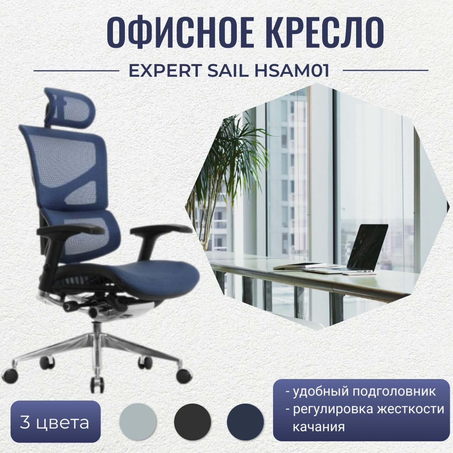 Кресло EXPERT 2 SAIL HSAM 01 (подлокотник 6D(360), подголовник 5D, сетка черная / каркас черный)