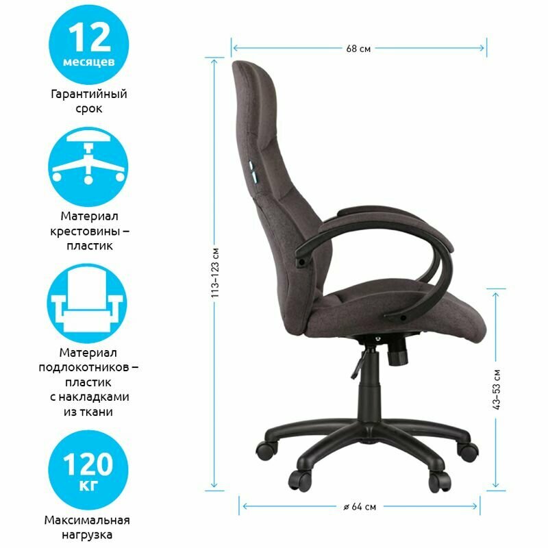 Кресло руководителя Helmi "Wave", ткань серая (283861) интересное: