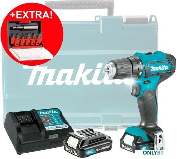 Купить Аккумуляторная дрель-шуруповерт Makita DF333DYX14 Li-Ion 12В 1.5 А·ч x2 кейс, набор бит