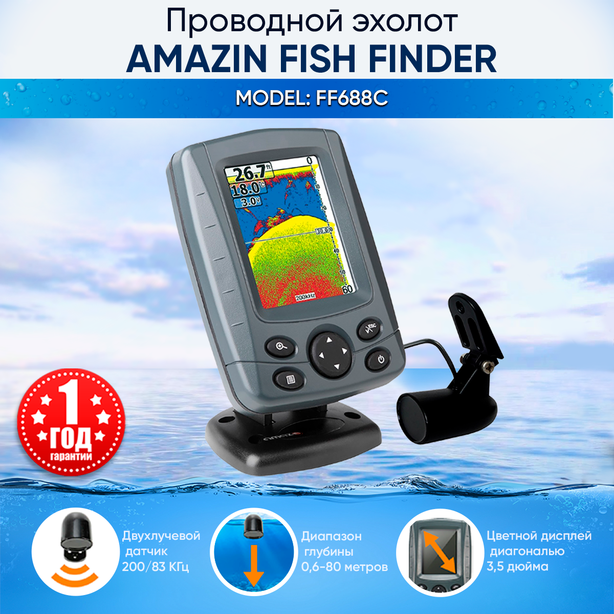 Проводной Эхолот Amazin Fish Finder 688 C для лодки двухлучевой