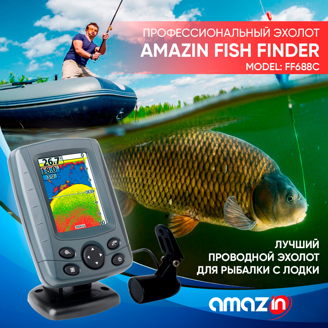 Эхолот Amazin Fish Finder 688 C для лодки проводной двухлучевой