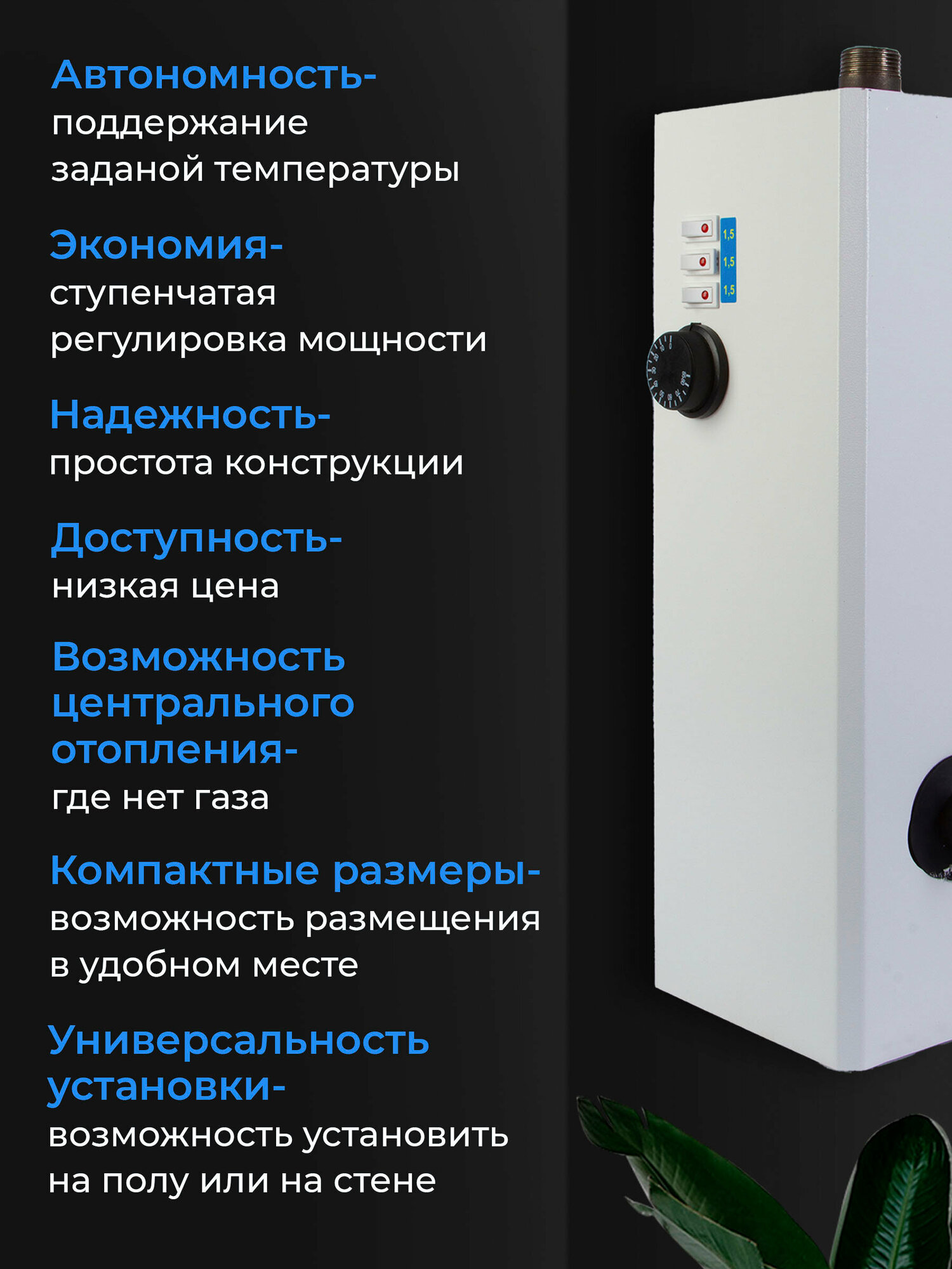 СохранитьЭлектрический котел ЭВПМ-4,5кВт, напольный/настенный, одноконтурный, 3 ступени мощности интересное: