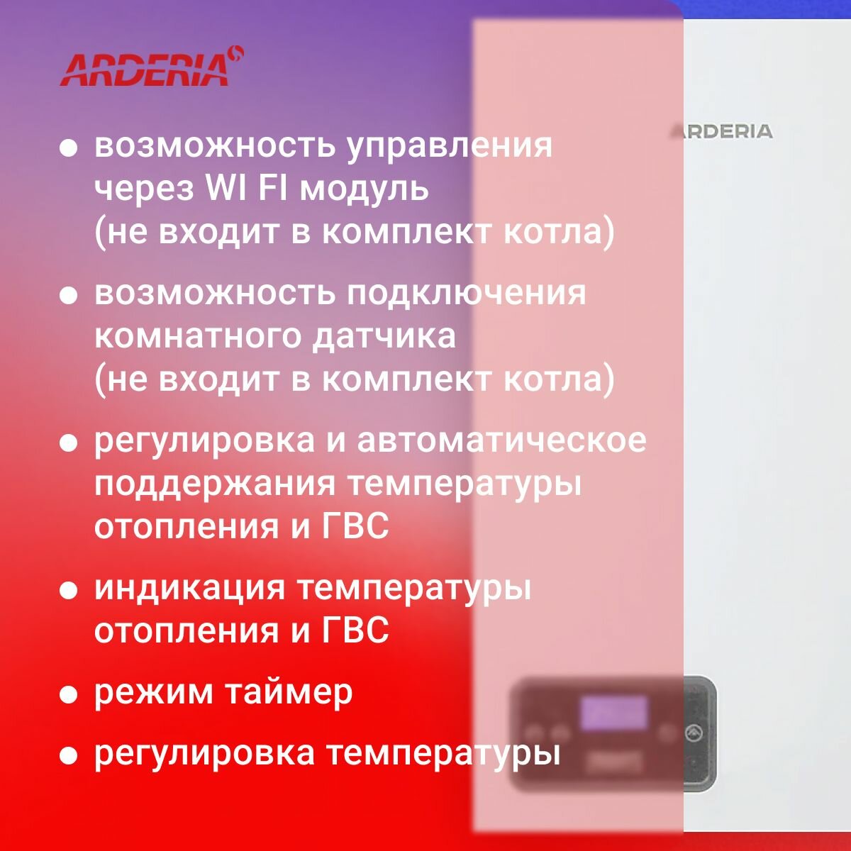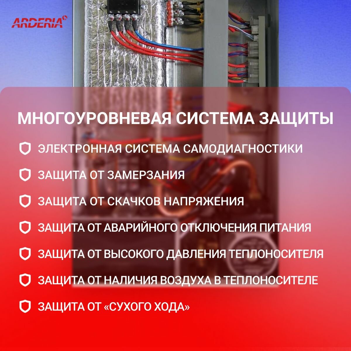 Электрический котел Arderia E4, с возможностью подключения бойлера / одноконтурный / для отопления / сухой тэн / семисторная защита / Ардерия