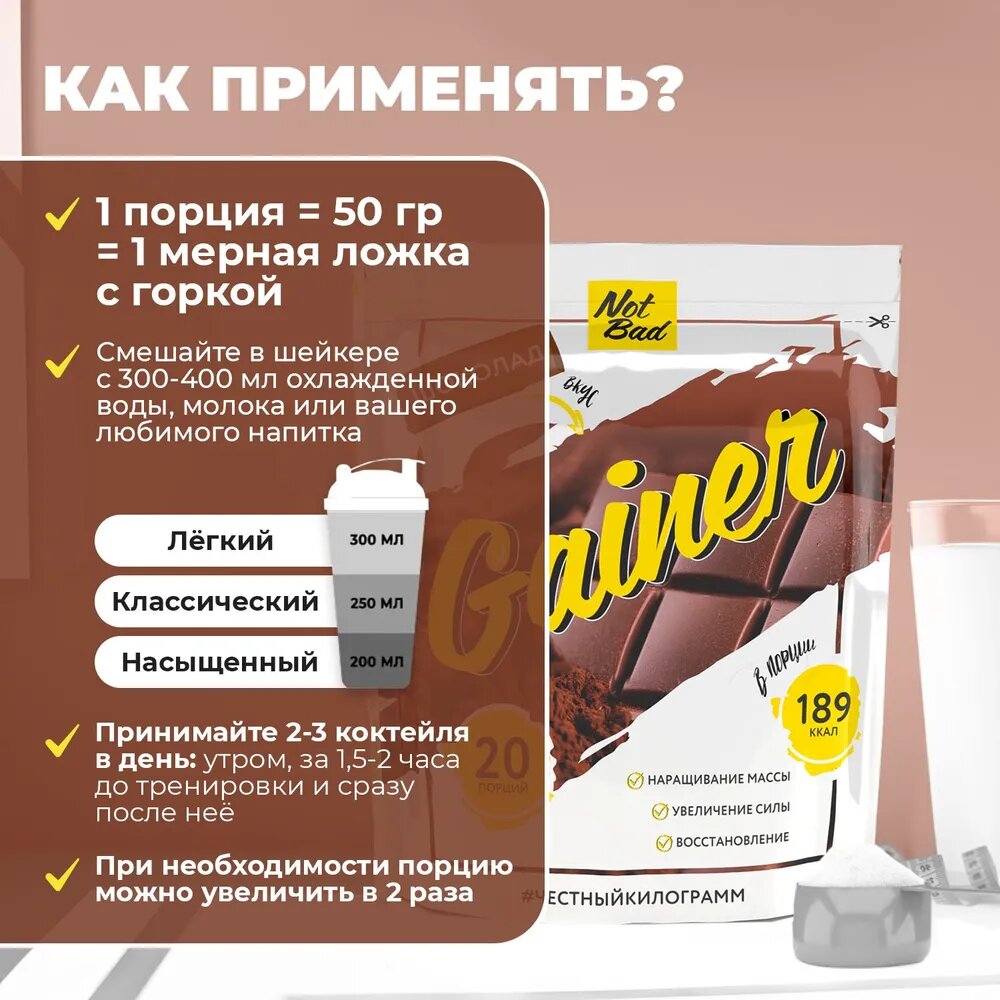 NotBad GAINER 1000 gr, 20 порции(й), шоколад