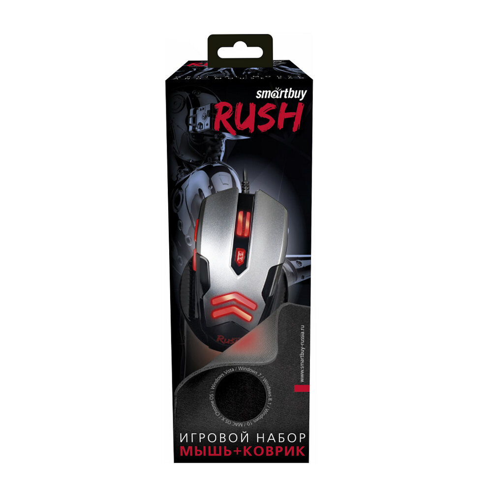 Проводная мышь игровая+ковер SmartBuy Rush SBM-729G-K Black-Grey