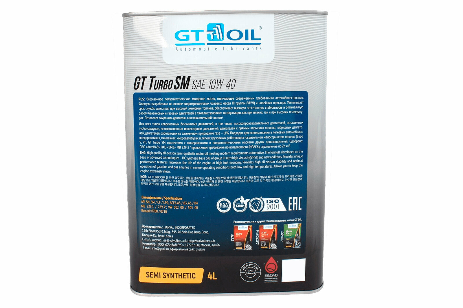 Моторное масло gt turbo sm sae 10w40 (4л) 8809059407028