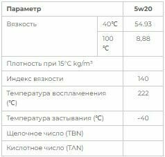 | Класс вязкости SAE | 5W-20 |