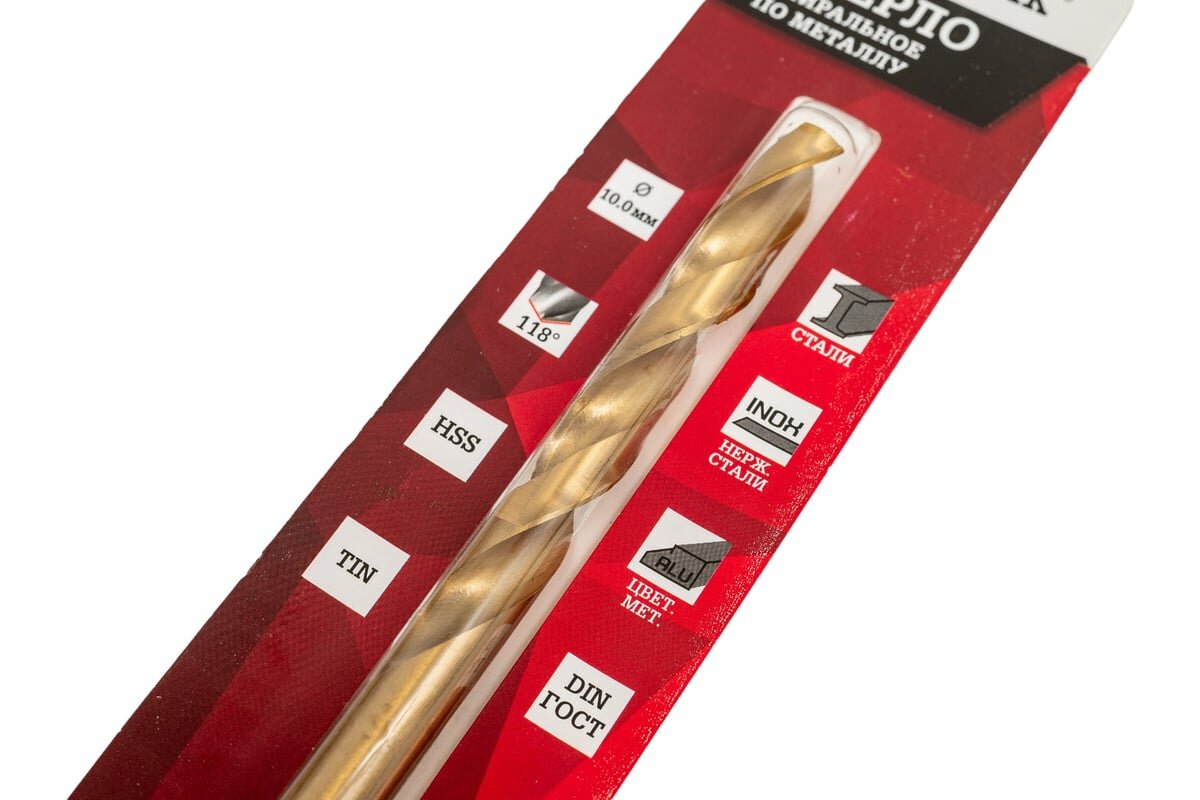 TDB100NTB Сверло спиральное по металлу HSS TiN в блистере, d10.0 мм