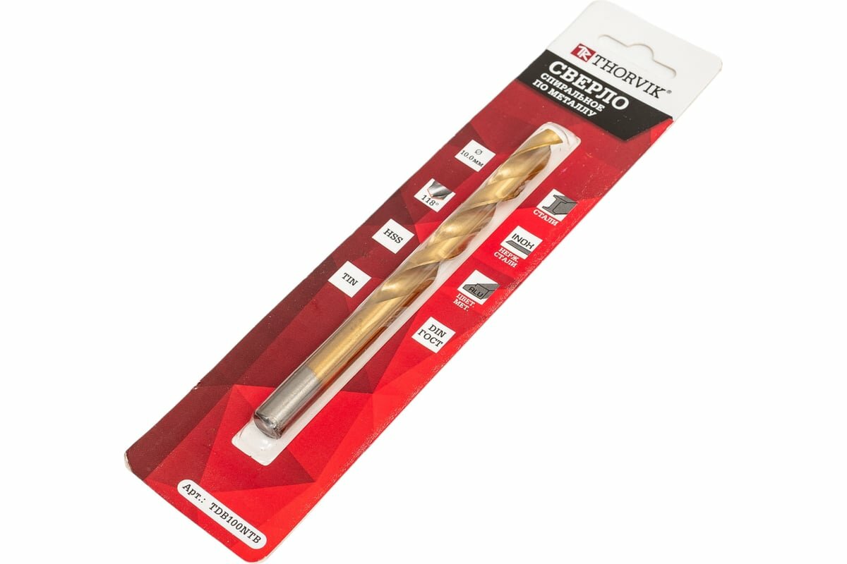 Сверло спиральное по металлу HSS TiN в блистере, d10.0 мм Thorvik TDB100NTB