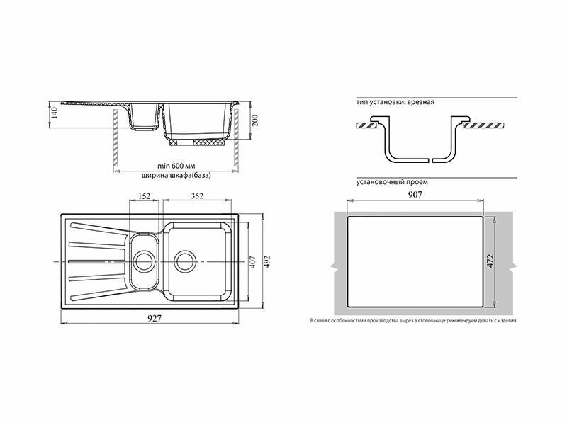 | Плюсы: | Цвет красивый, подходит к дизайну кухни. Возможность самостоятельно сделать отверстие под смеситель в удобном месте. Хотела именно такие чаши: две разноразмерные с большим фартуком. |