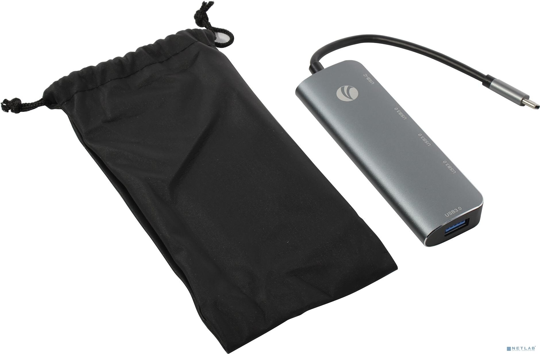 Концентратор VCOM CU4383A USB 3.1 Type-A-4*USB 3.0, USB Type C PD, aluminium shell