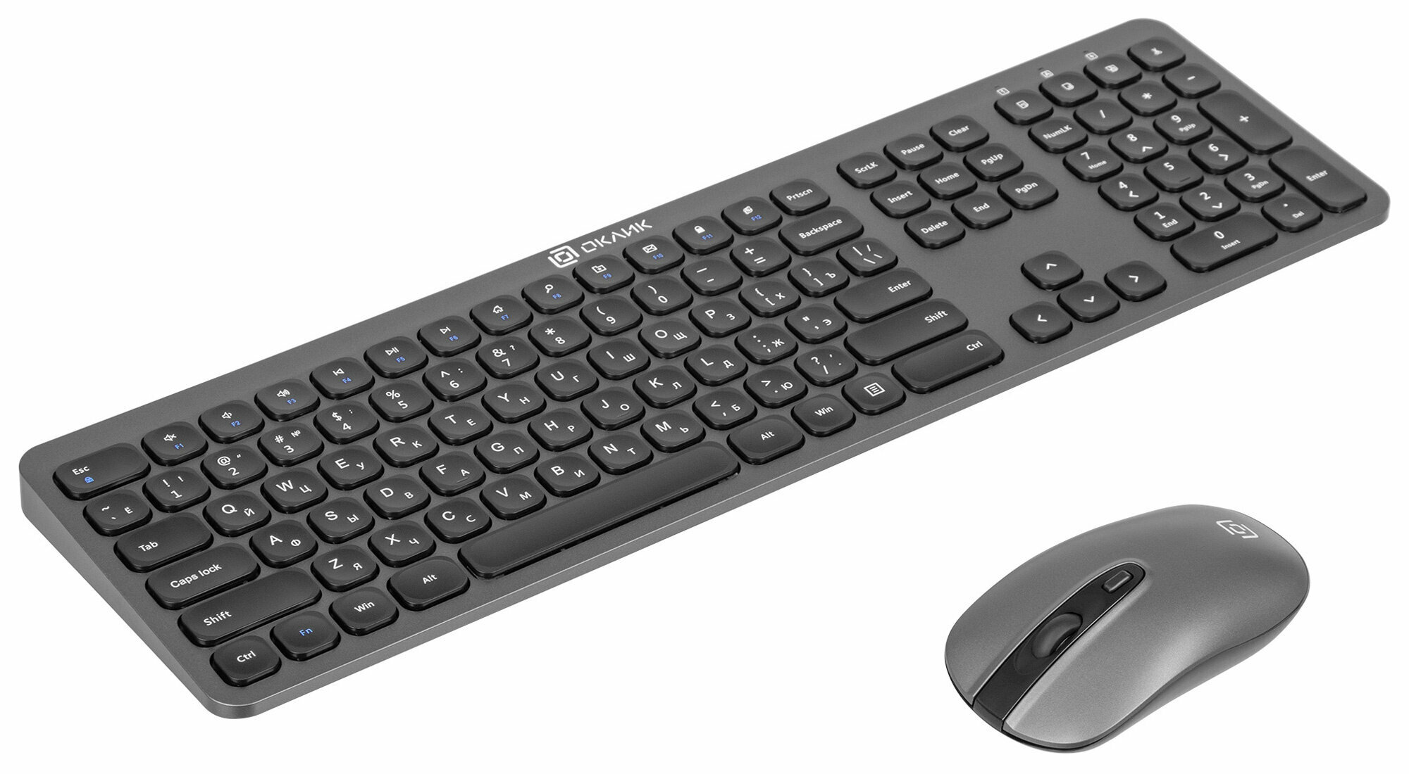 Комплект беспроводной клавиатура + мышь Oklick 300M, Wireless/USB, Серый/Черный 1488402
