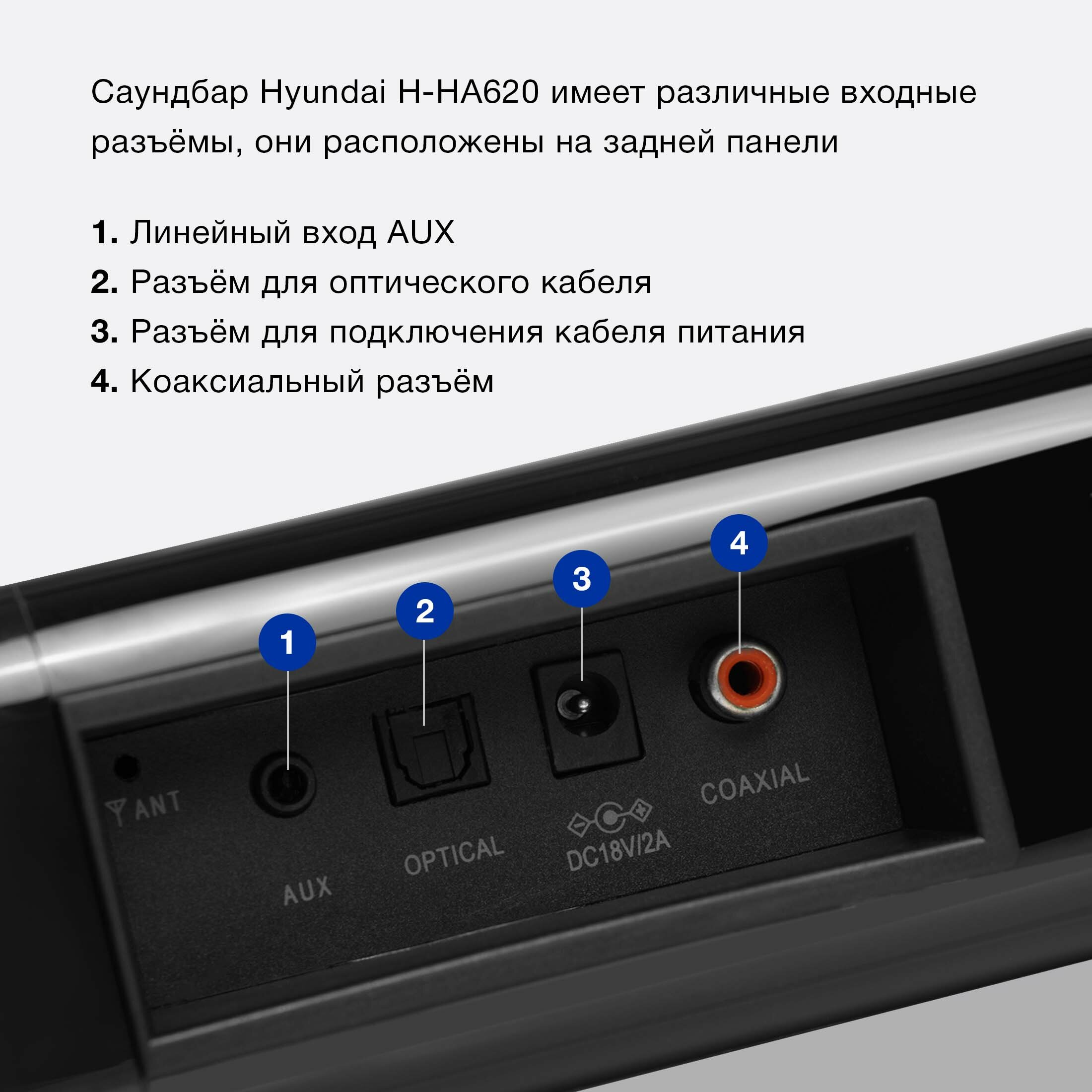 Саундбар Hyundai H-HA620 2.0 60Вт Bluetooth интересное: