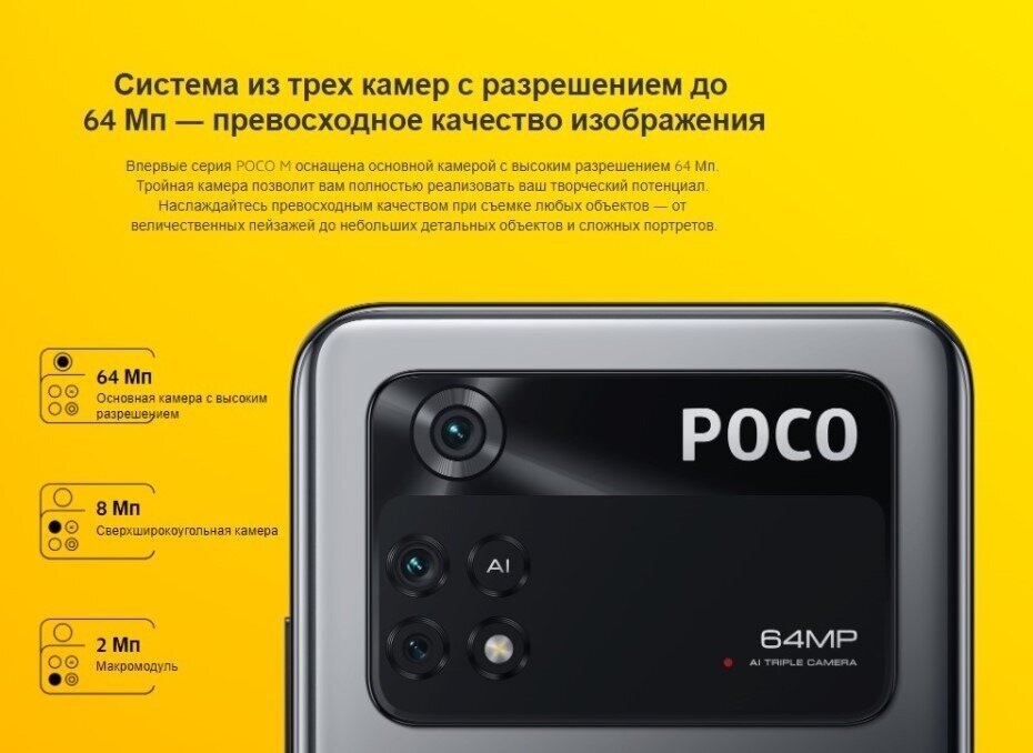 Смартфон Xiaomi POCO M4 Pro 4G 6/128 ГБ RU, Dual nano SIM, желтый POCO