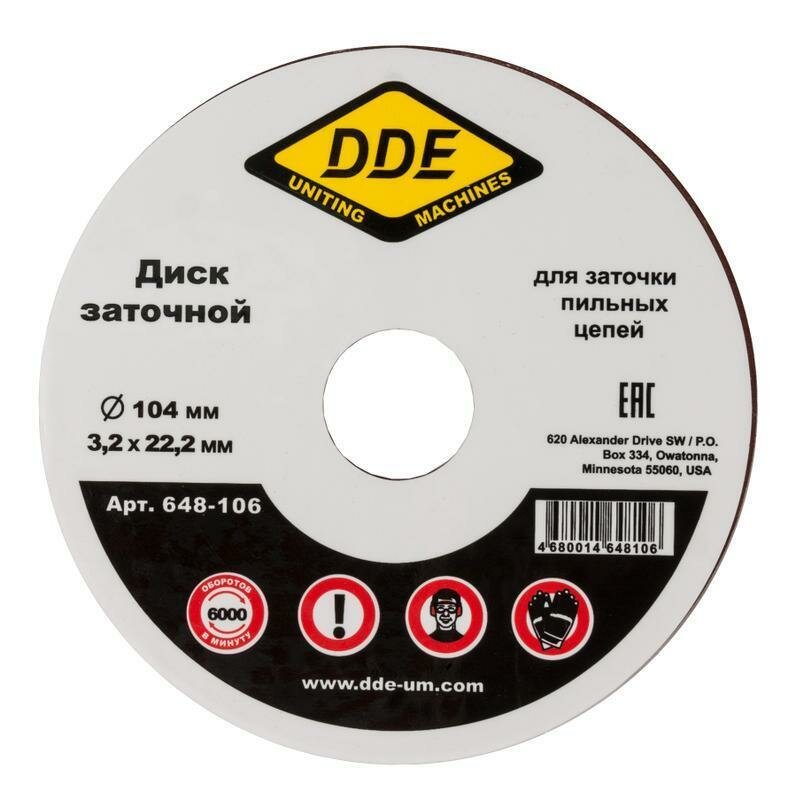 Диск абразивный точильный DDE 104х3,2х22,2 мм для цепи 3/8"PM, 325", 1/4" (648-106)