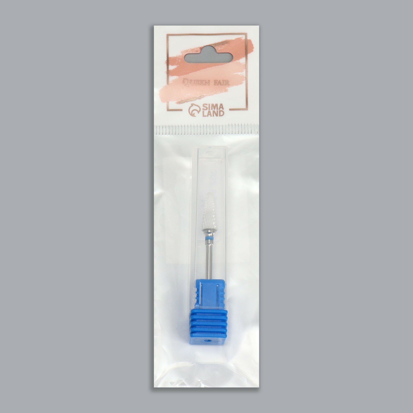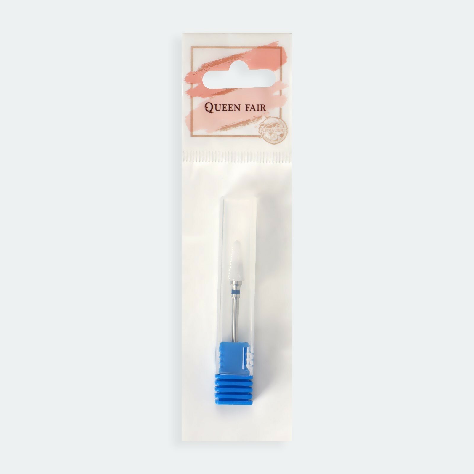 Queen fair Фреза керамическая для маникюра «Конус скруглённый», средняя нарезка, 6 × 14 мм, в пластиковом футляре, цвет белый