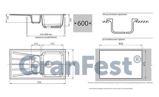 СохранитьКухонная мойка GranFest GF-S940KL (белый) интересное: