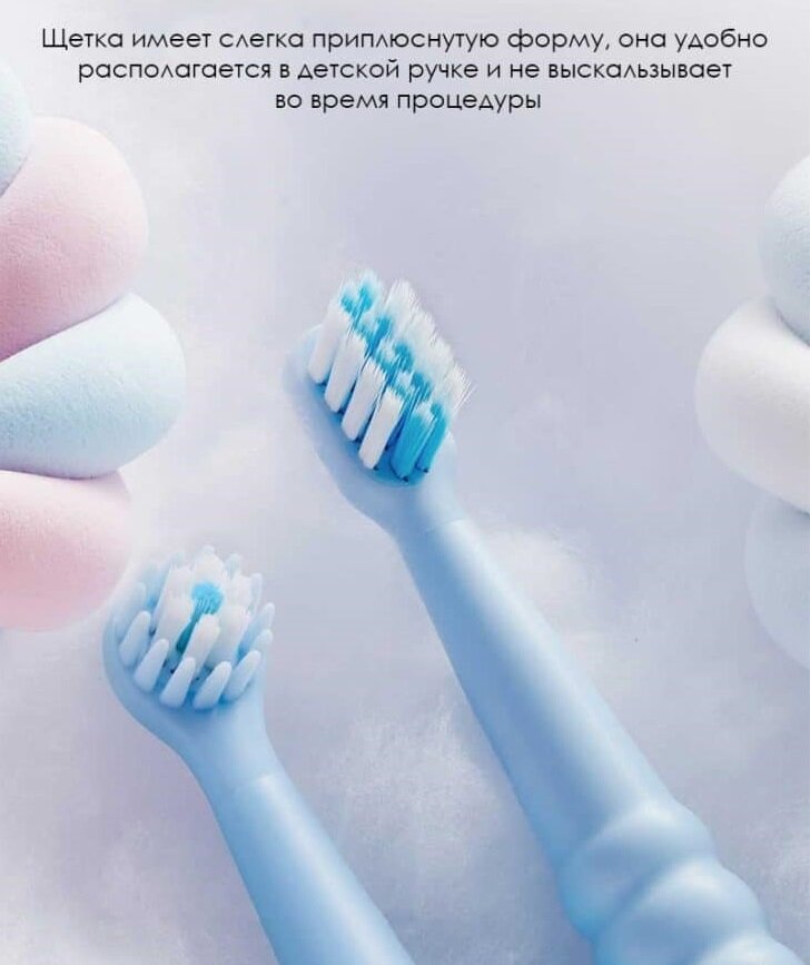 Электрическая зубная щетка детская DR.BEI K5, для детей от 3 до 12 лет, 2 сменные насадки, мягкая щетина, голубой
