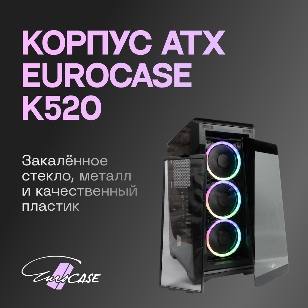 Игровой корпус для ПК Eurocase K520, закаленное стекло, EATX, ATX, micro-ATX, mini-ITX, 2xUSB3.0, 3 вентилятора