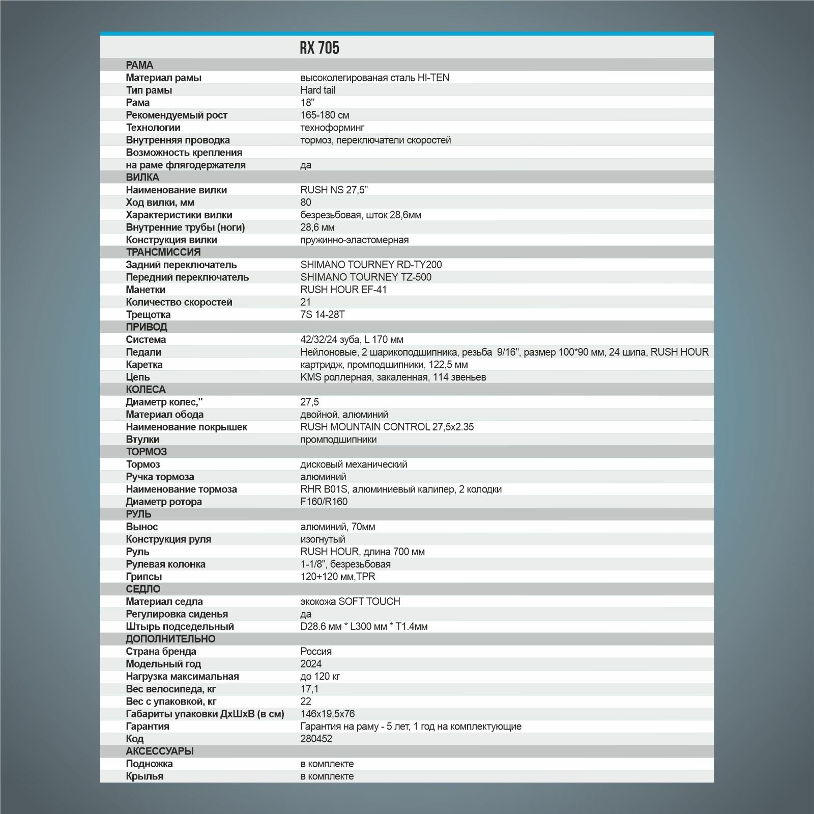 Велосипед горный 27,5" RX 705 DISC ST 21ск RUSH HOUR