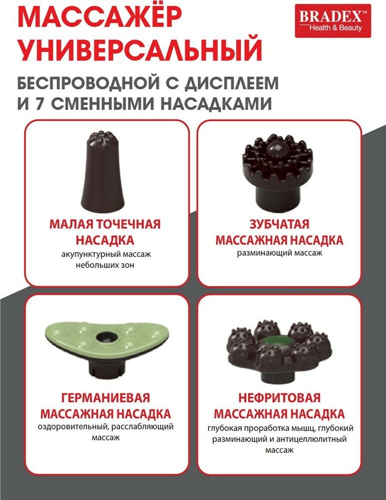 Массажер универсальный Bradex беспроводной с дисплеем и 7 сменными насадками KZ 0567