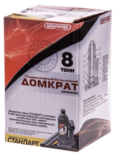 SKYWAY S01804025 Домкрат гидравлический "" STANDART бутылочный 8т h 193-380мм; SKYWAY