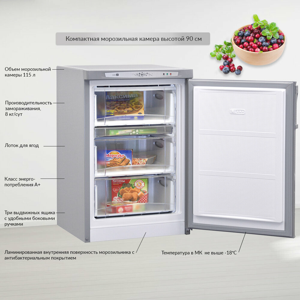 Морозилка NordFrost DF 159 ISP серебристый, 115л . интересное: