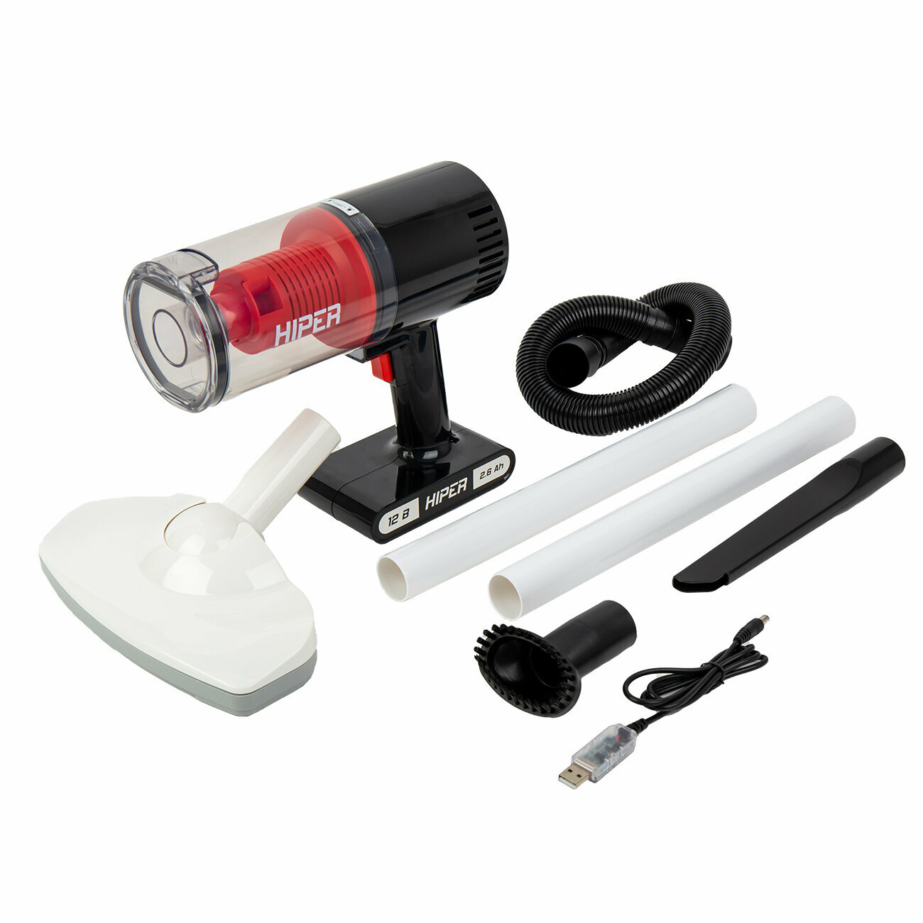 Пылесос автомобильный аккумуляторный HIPER HVC100LI, 12В, 100Вт, 6кПа, пылесборник 0.5л, Li-Ion 2Ач