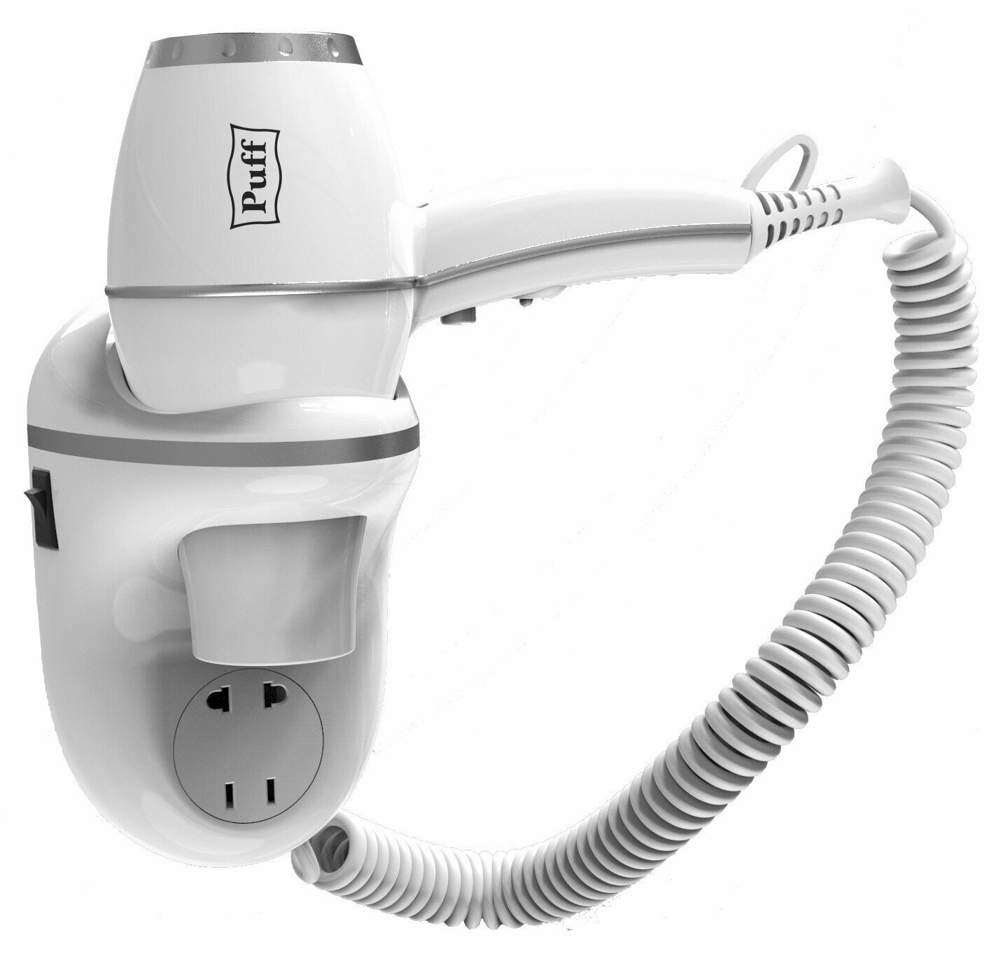 Купить Фен для волос настенный "Puff-1800В", белый, 1,8 кВт, с розеткой, 20,5х11х24 см