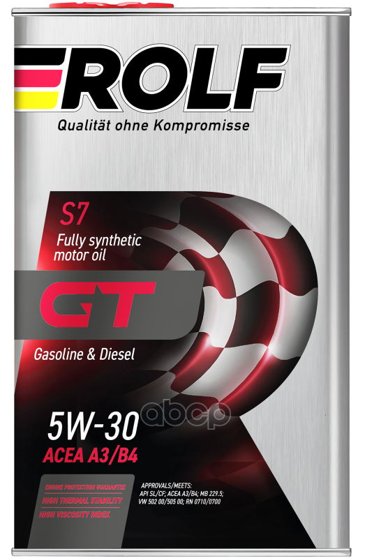 ROLF GT 5W30 SL/CF 4л (пластик) Масло моторное синтетическое ACEA A3/B4 МВ 229.5 VW 502.00/505.00 RN 0710/0700