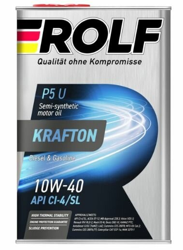 ROLF 322580 Rolf Krafton P5 U 10W40 (1L) (мета) масо моторное! п/синт.\ API CI-4/SL,MB 228.3,MAN 3275-1,VDS-3