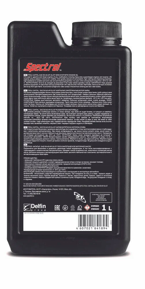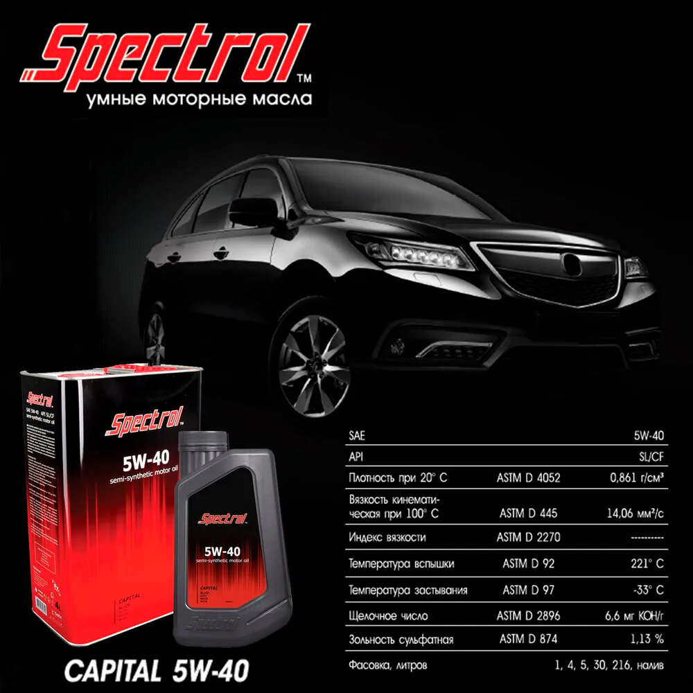 Спектрол Масло моторное Капитал SAE 5W40 API SL/CF п/с 1л