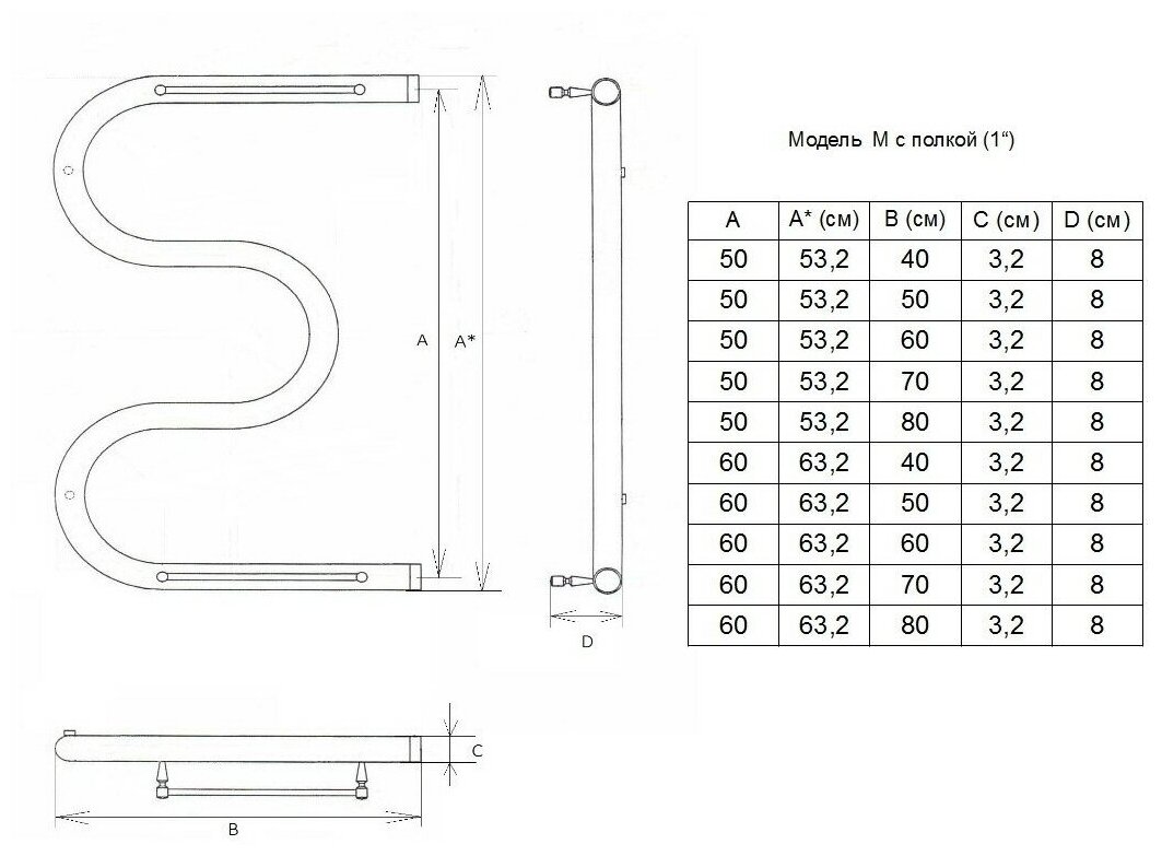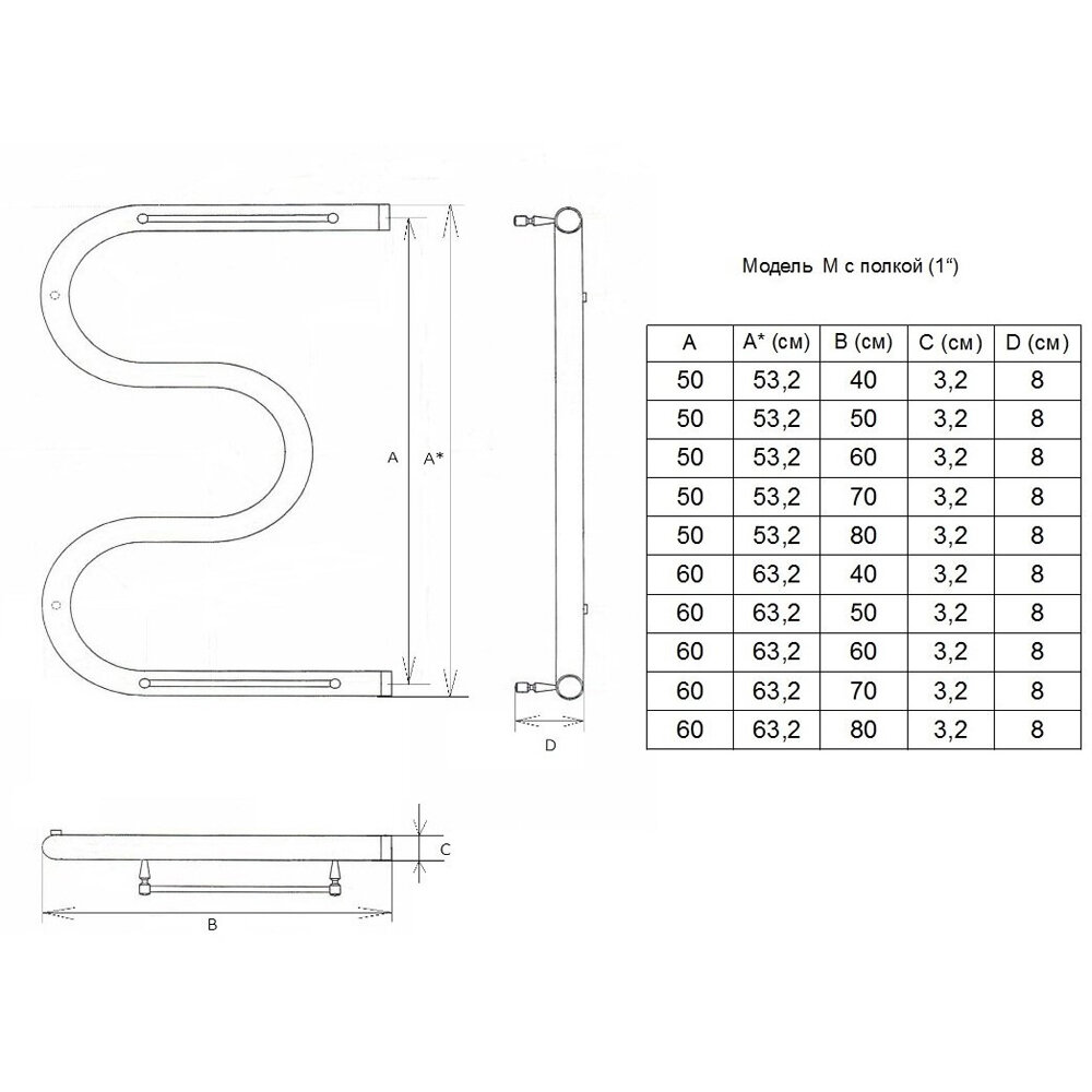 Полотенцесушитель водяной Двин M с полкой 50/50 1" К0 интересное: